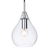 What sets this pendant light apart is its compact teardrop shape, which is a unique and eye-catching design that adds a touch of elegance to your interior. The clear ribbed glass shade adds texture and personality, while the chrome trim brings a modern twist.