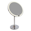This illuminated portable mirror is 220mm in diameter and stands 383mm high and it's diffused LED halo ring will illuminate for up to 2-hours from a single charge (Charge time: 3-hours).