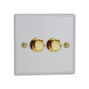 Varilight Vogue LED V-Pro 2 Gang Rotary Dimmer Switch White with Brass Knobs